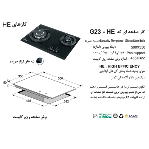 • جنس صفحه: شیشه سکوریت مقاوم، تحمل بالا در برابر حرارت و ضربه