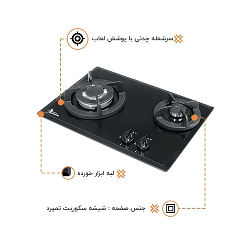 • تعداد شعله: دو شعله، یک شعله کوچک، یک شعله پلوپز