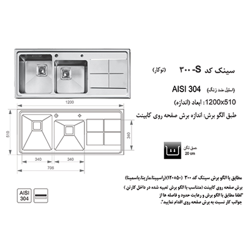 ابعاد و نصب سینک ظرفشویی باکسی اخوان مدل 300S