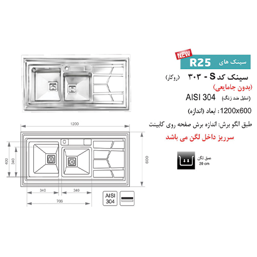 خرید سینک ظرفشویی باکسی اخوان مدل 303S از رفیعیان استور